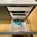 Daire, mikrodalga fırın, elektrikli su ısıtıcısı, buzdolabı gibi olanaklara sahip mutfak ile donatılmıştır.